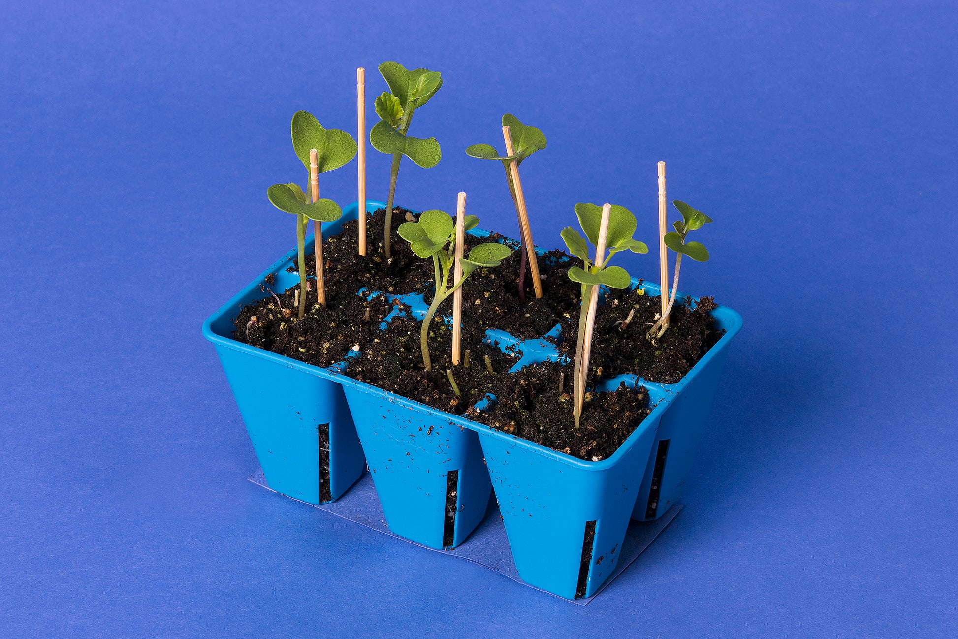 Plants are lighter green and have smaller cotyledons and leaves than standard, 1-33.